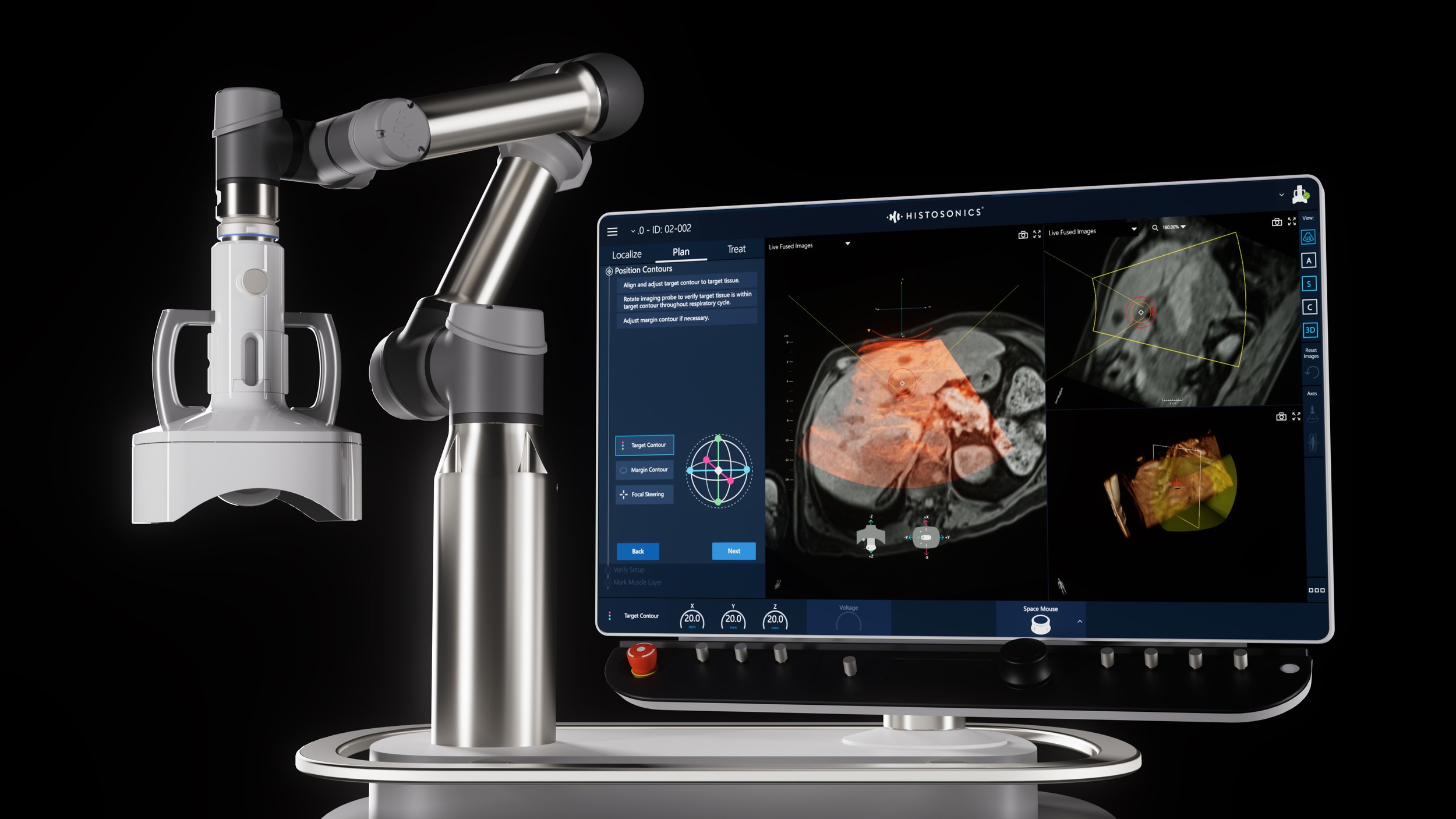 Histotripsy uses a robotic platform to deliver the sound waves through the skin and tissue, targeting the liver tumor directly. The sound waves create tiny bubbles, called cavitation inside the tumor. These bubbles grow and quickly burst, disintegrating the tumor.