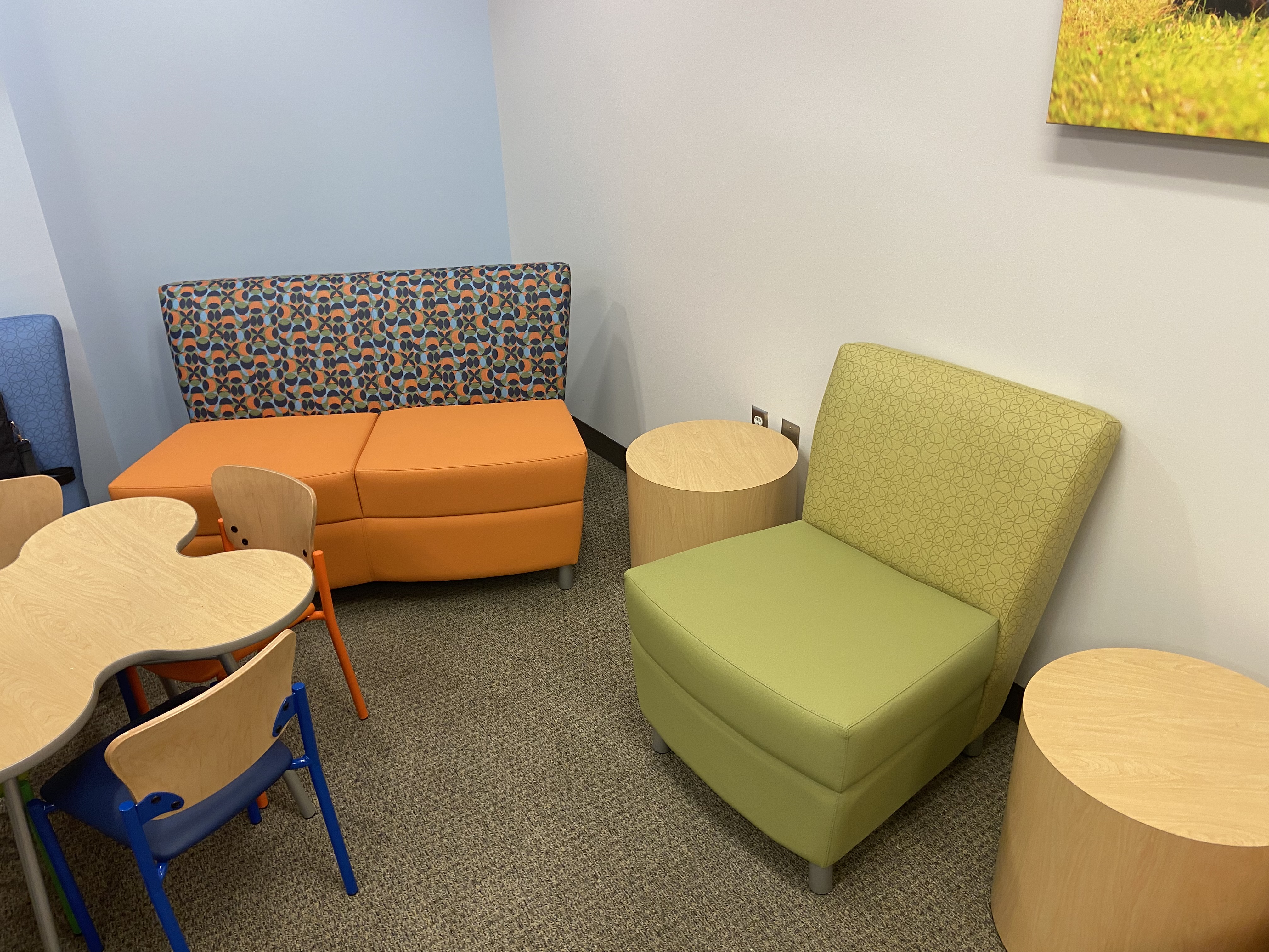As patients and their families enter the new clinic, they’ll be greeted with a bright colored child-friendly front waiting area. The space includes six exam rooms and pediatric specialists that will provide care for a range of ailments from common to more complex for infants through teens.