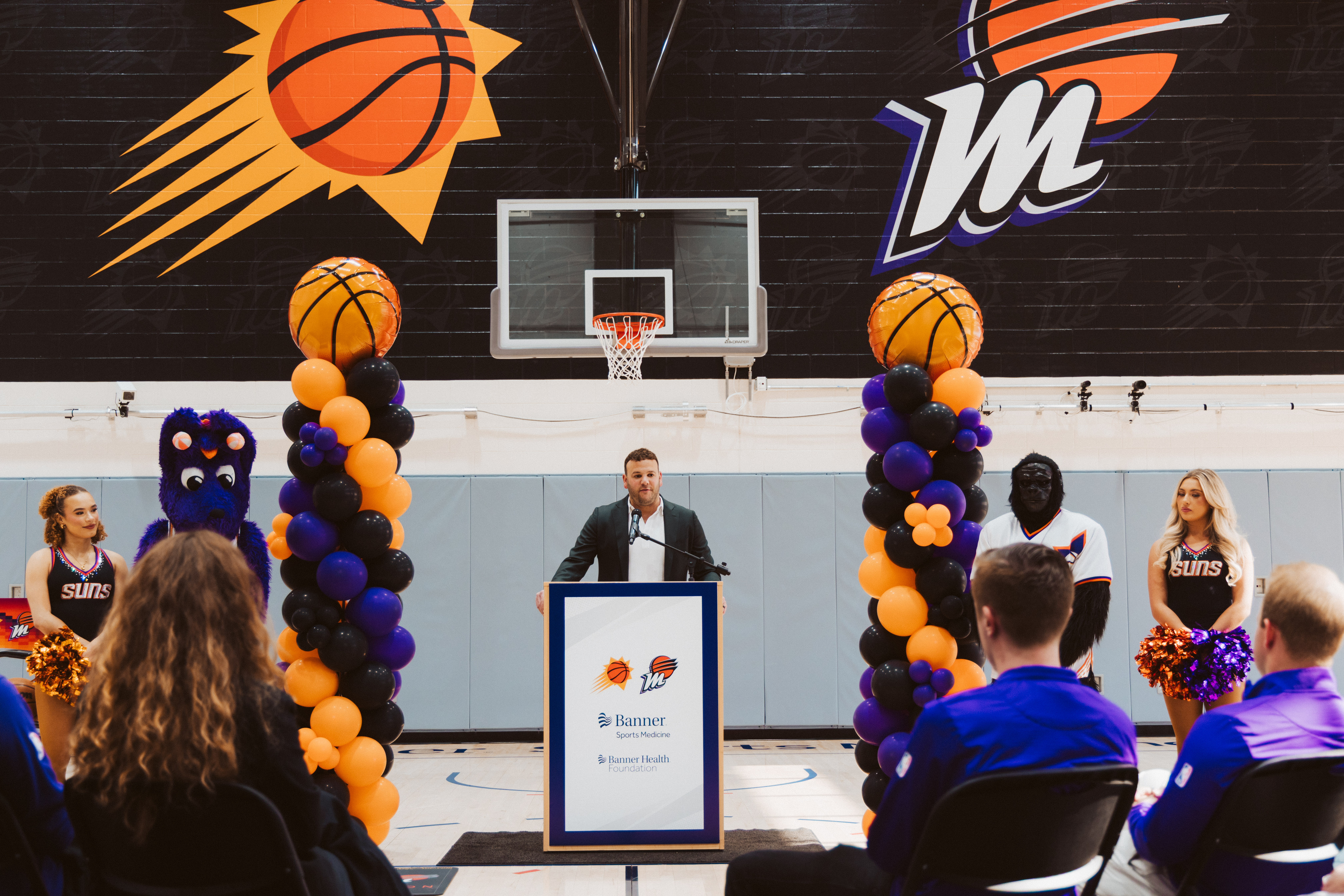 Leaders from Banner Health and the Suns and Mercury took part in Monday’s ceremony at Banner Sports Medicine Scottsdale’s High Performance Center to officially dedicate the basketball court as the Phoenix Suns Phoenix Mercury Basketball Court, in recognition of the generous gift.