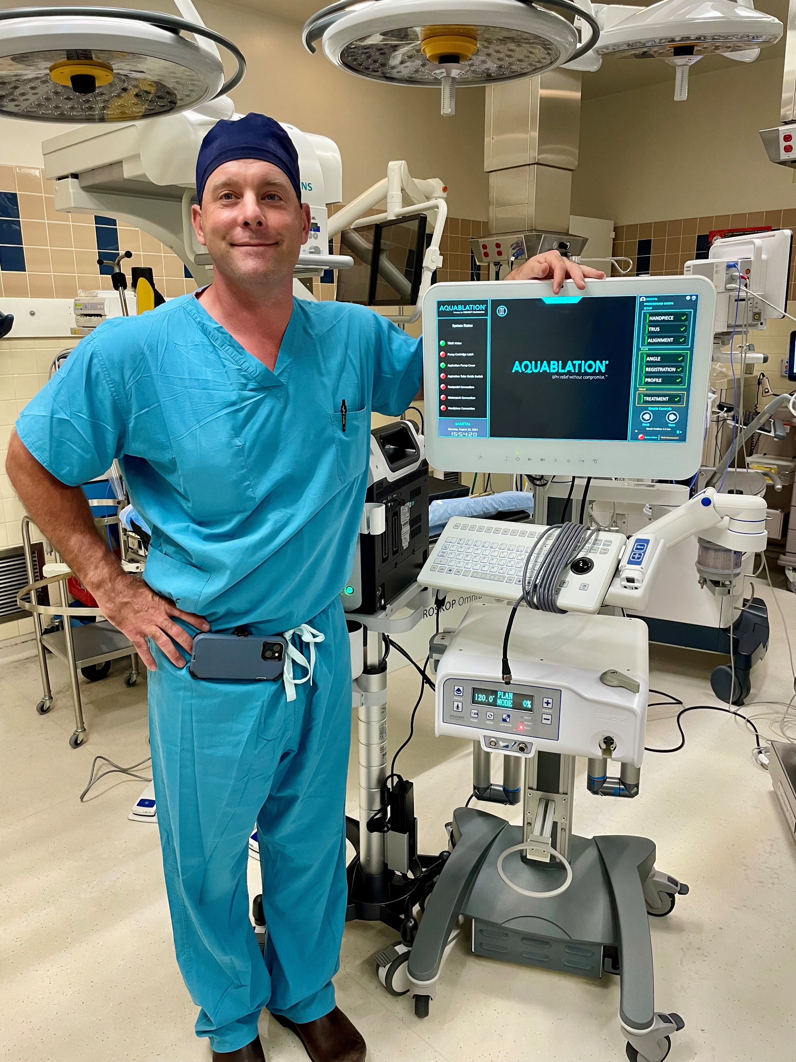 Dr. Trojan -- Dr. Brandon Trojan, a urologist at Central Wyoming Urological Associates, poses with the machinery used for Aquablation in Banner Wyoming Medical Center's operating room after the first procedure was completed last August.